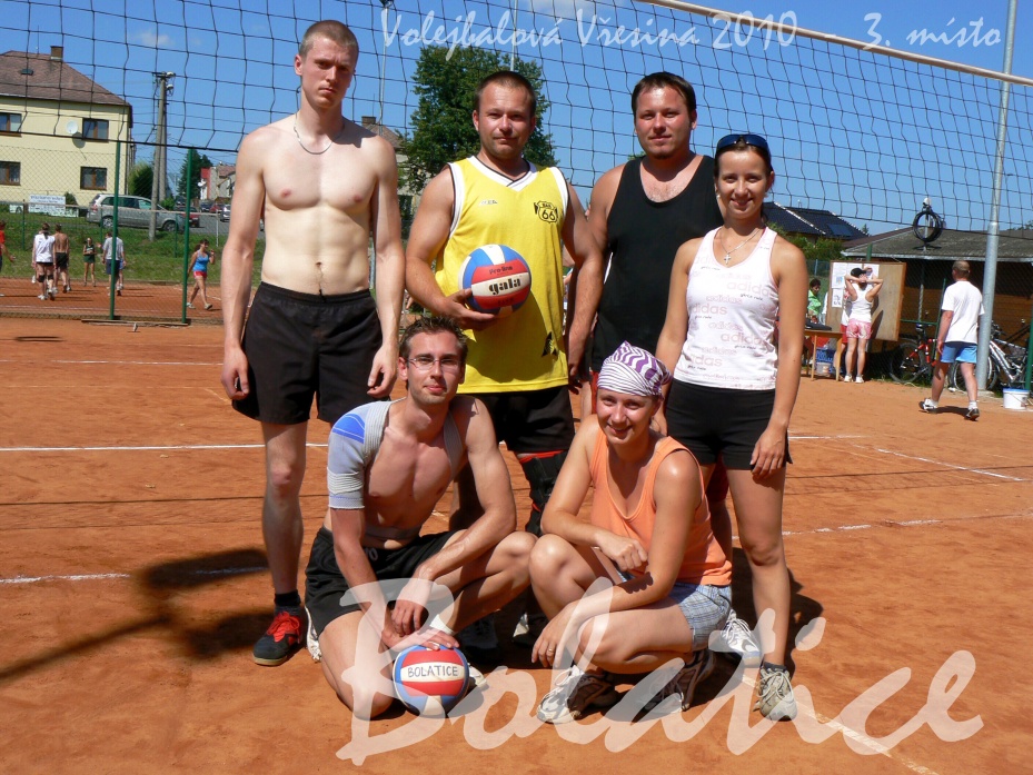 V sobotu 21.8.2010 proběhl za účasti namakaných týmů z okolí již 9. ročník našeho tradičního volejbalového turnaje smíšených družstev. Pořadí týmů vyplývá z umístění ve fotogalerii. Další foto na rajčeti zde. Video od ČRTV je zde.