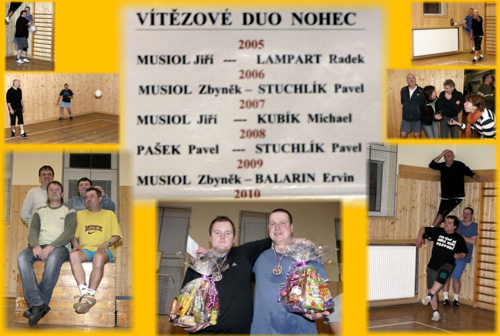 6. ročník turnaje v nohejbalu losovaných dvojic místních mistrů v kopacích dovednostech. Přímý odkaz na video z turnaje. Video na Hlucinsko.tv.