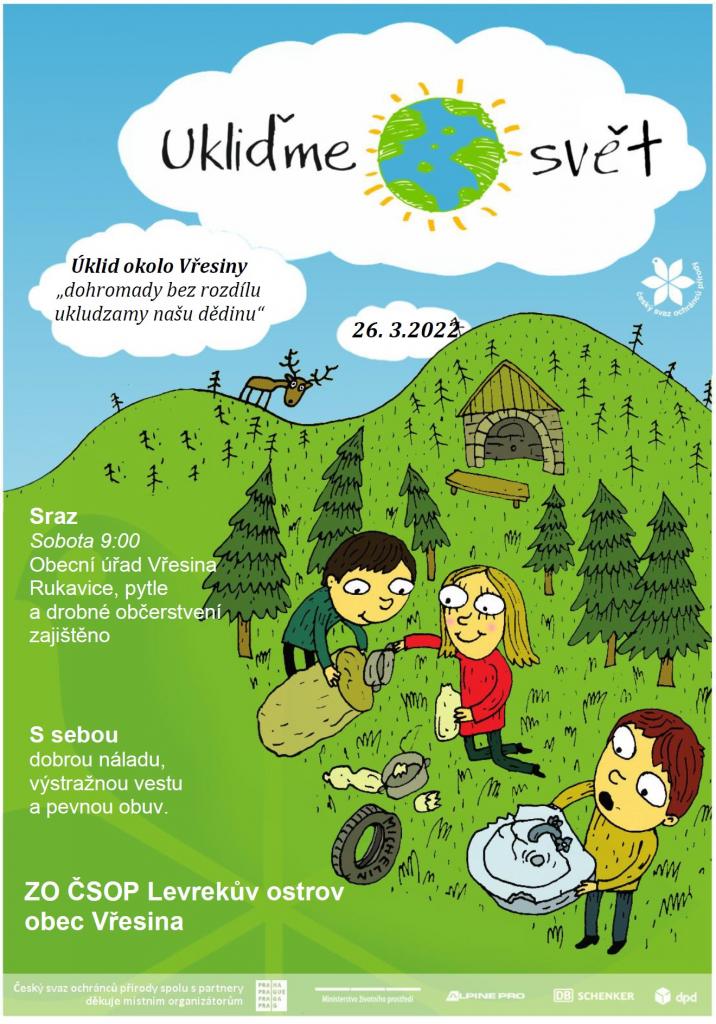 Dne 26. března 2022 proběhl společný úklid okolo Vřesiny, bohužel účast nebyla valná, ale akce měla souběh s několika dalšími. I přesto se nám podařilo sesbírat více než 15 pytlů odpadu, sadu pneumatik a další specialitky.
