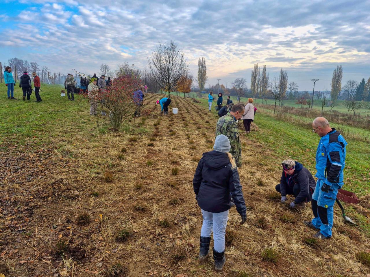 Dnes jsme pro Vřesinu zasadili 836 vřesů v prostoru suchého poldru.